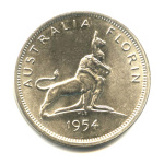 2 шиллинга (флорин) — Королевский визит в Австралию (Юбилейная монета) 1954