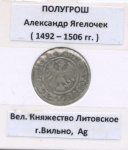 Полугрош (½ гроша) — Александр Ягеллончик, 1492−1506, Великое княжество Литовское Полугрош (½ гроша) — Александр Ягеллончик, 1492−1506, Великое княжество Литовское»» Ag 23 Vik1234 353