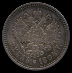 1 рубль — Портрет Александра III. Голова меньше, борода доходит до надписи 1894 АГ