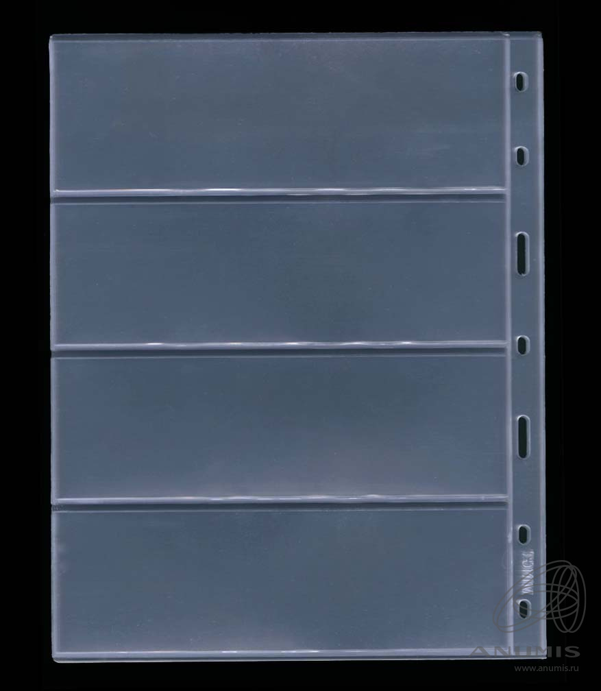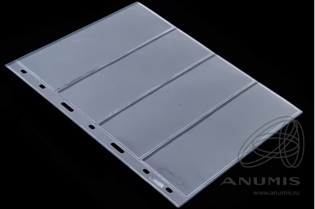 Листы MINGT в альбом OPTIMA на 4 банкноты упаковка 10 штук, материал ПЭТ. Размер 257×202 мм